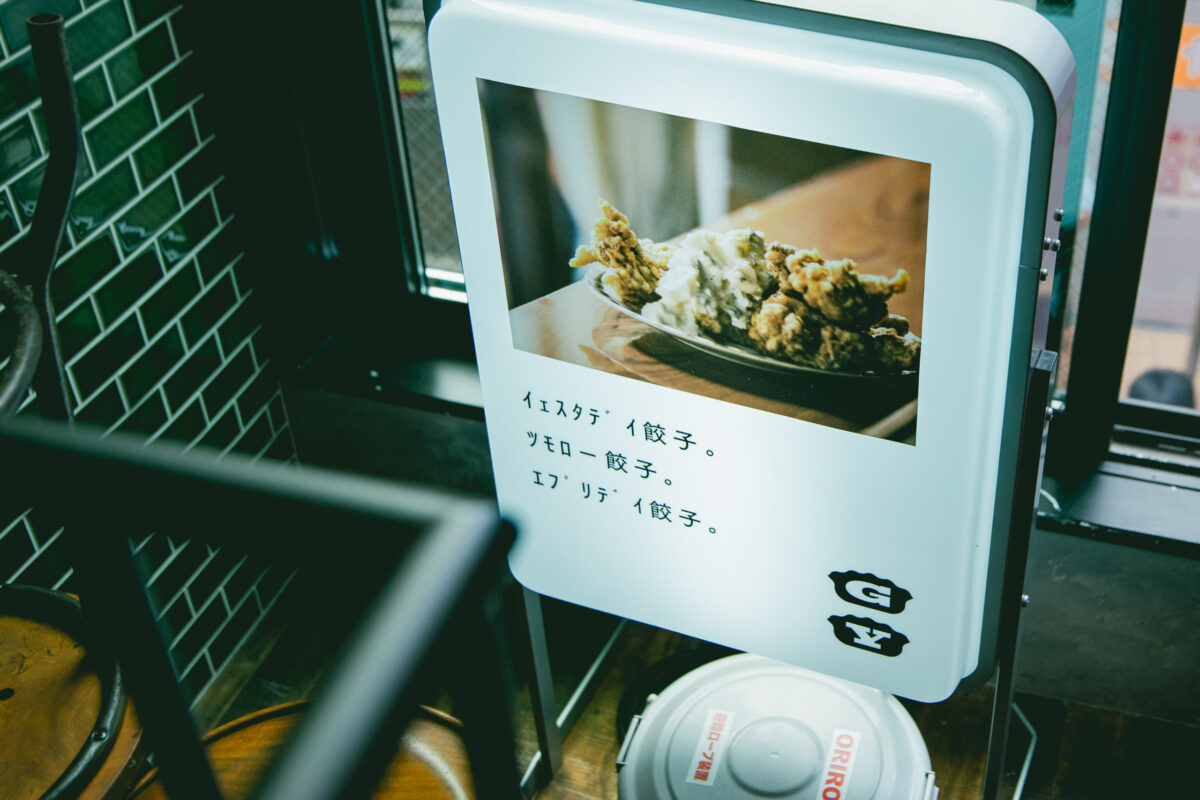 美味しすぎて昨日に戻ってでももう一度食べたい!というコンセプトから「昨日食べたのに、 今日もう食べたい。餃子イェスタデイ」に。とにかく餃子の専門店という事を打ち出すべく、ネーミングも分かりやすいものにし「大阪天満餃子」と銘打ちあたかも昔から天満の人々に愛されている餃子ということが瞬時にわかるようにしました。