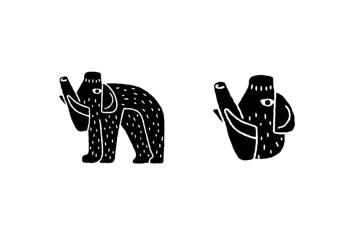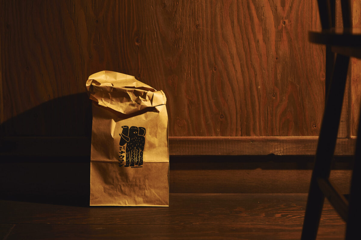 ナウマンの大きな体や力強さをイメージした無骨なロゴタイプに、古代人が描いたような独特のタッチのイラストをシンボルとして設定。ブランド名と同じくユーモアのあるデザインに。