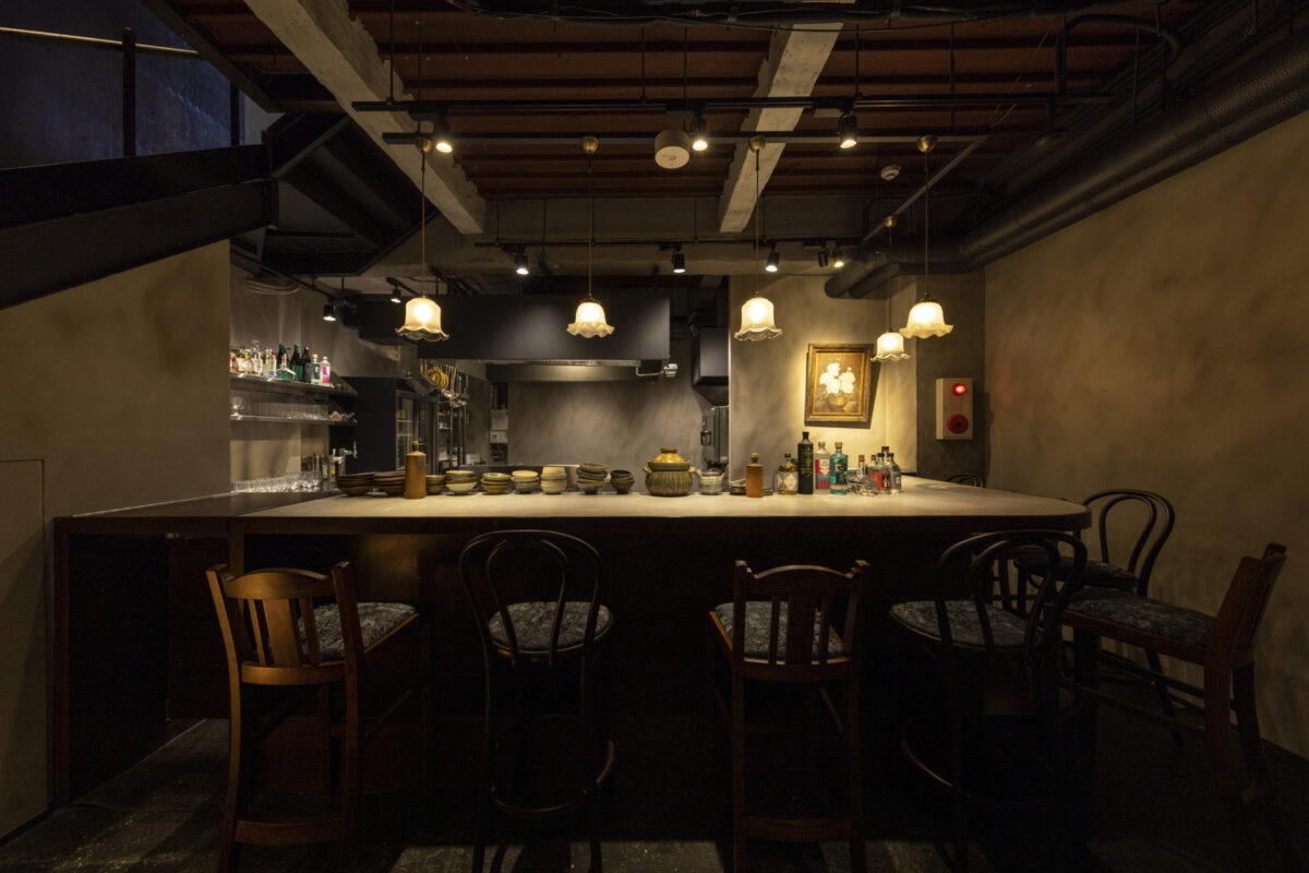ひらがなの「ま」を図案化し。「混ぜる」「交差する」「続いていく」要素を落とし込んだデザイン。「水引き」をモチーフに現代的にアップデートしてオーセンティックさの中に新しさを。シンボルの左右に切り込みを入れることで、料理をスプーンで混ぜている様を表現。