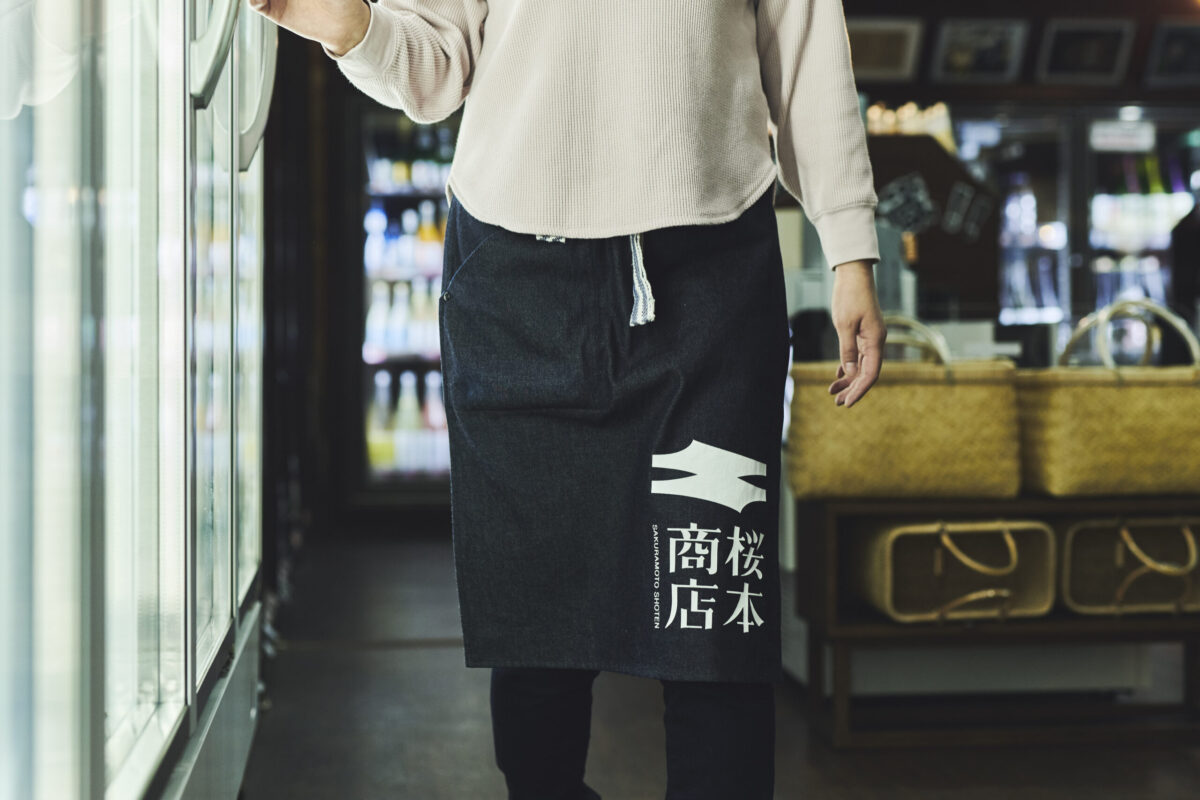 企業理念の「響き合い、共に⽣きる」を対になる2つの菱形を重ね合わせ表現したデザイン。2つの菱形は「売り手である桜本商店と造り手である酒造」、「地域に根ざす桜本商店とお客様」など、桜本商店と関わり合い共に生きる大切な人々を表している。他にも頭文字の「S」、ひらがなの「さ」、菱形による「輝き」、組み合わせることで生まれる余白は「乾杯の酒」を表している。