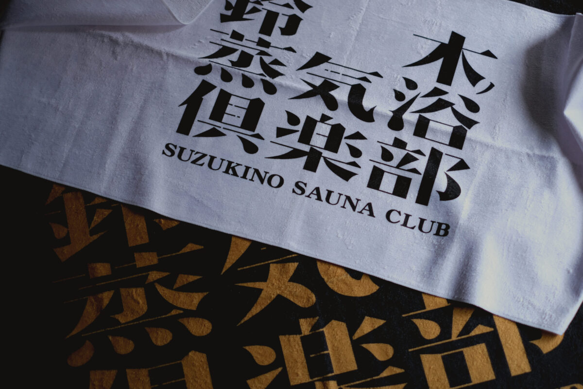 サウナスペースの入口に記した「薄野蒸気浴倶楽部」と「オーナー」の名を借り、ユーモアの蒸気をまとわせた数量限定「鈴木ノ蒸気浴倶楽部」タオル。熱と語らいが交差する漢達の秘密基地には、いつの時代もユーモアが必要不可欠だ。