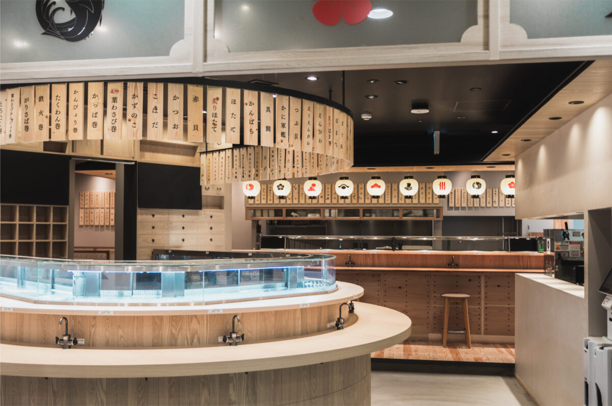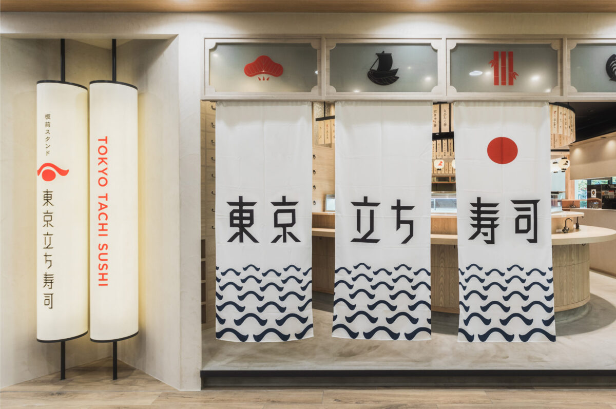 家紋のような江戸前の伝統を感じさせる力強いフォルムは、ネタとシャリの関係性、絶妙なバランスをイメージ。 上のネタの形状は「波」、下のシャリの円型は「太陽/日の出」も連想させるデザイン。