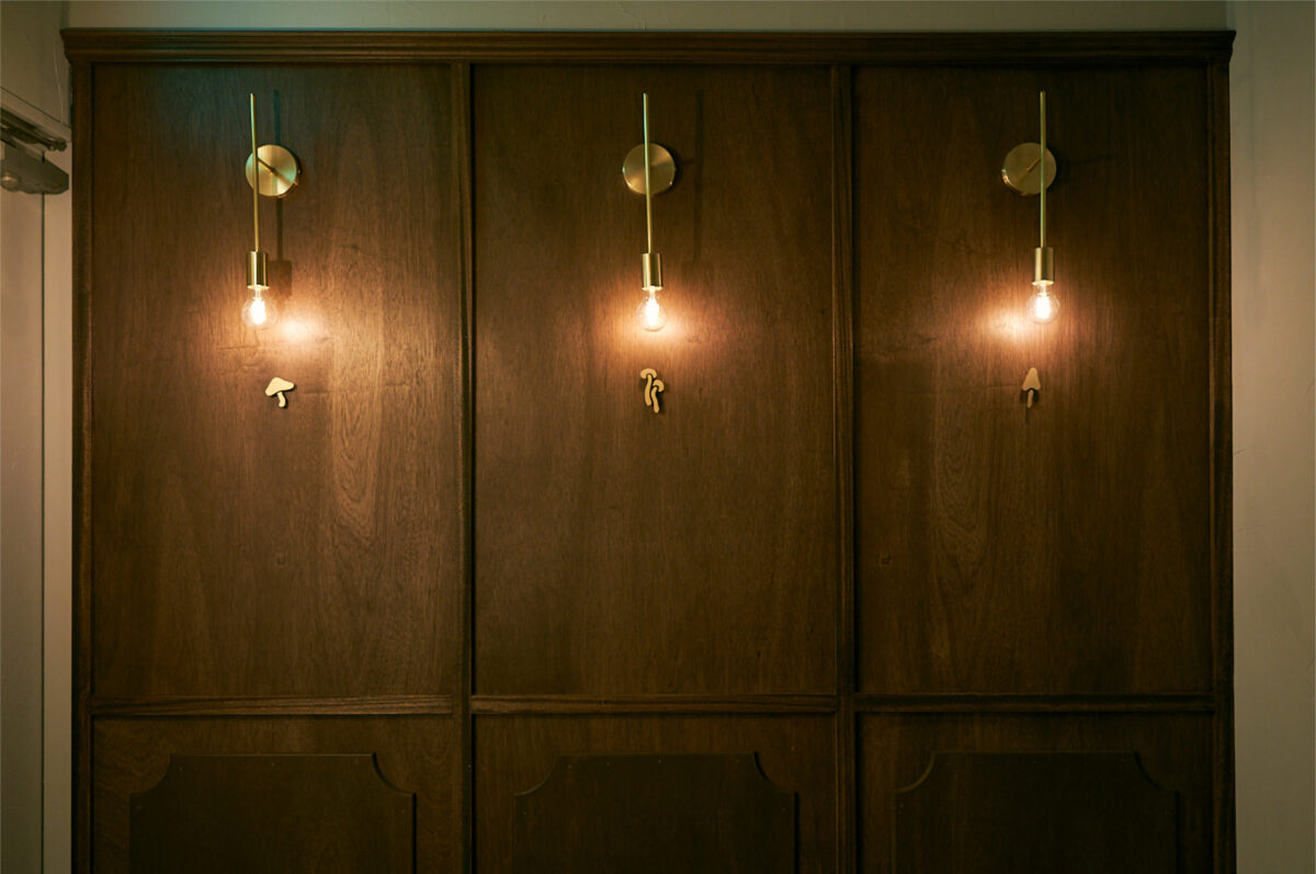 オーナーのバックボーンにある「おばあちゃんと裏の山のきのこを取りに行った思い出」をモチーフにしたロゴ。 影絵のようなシルエットイラストがストーリーを感じさせるデザイン。